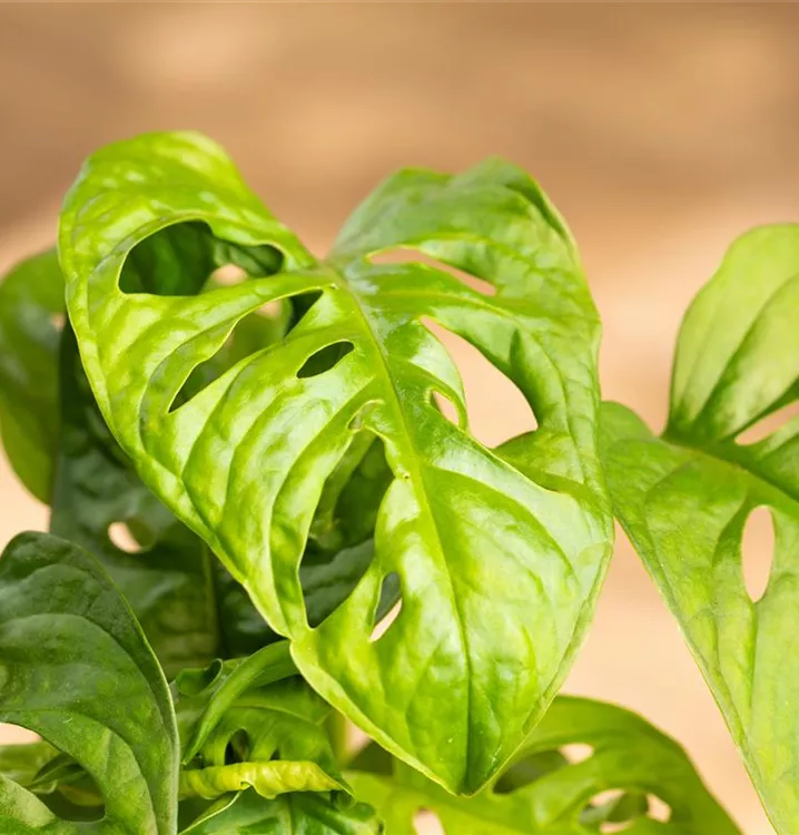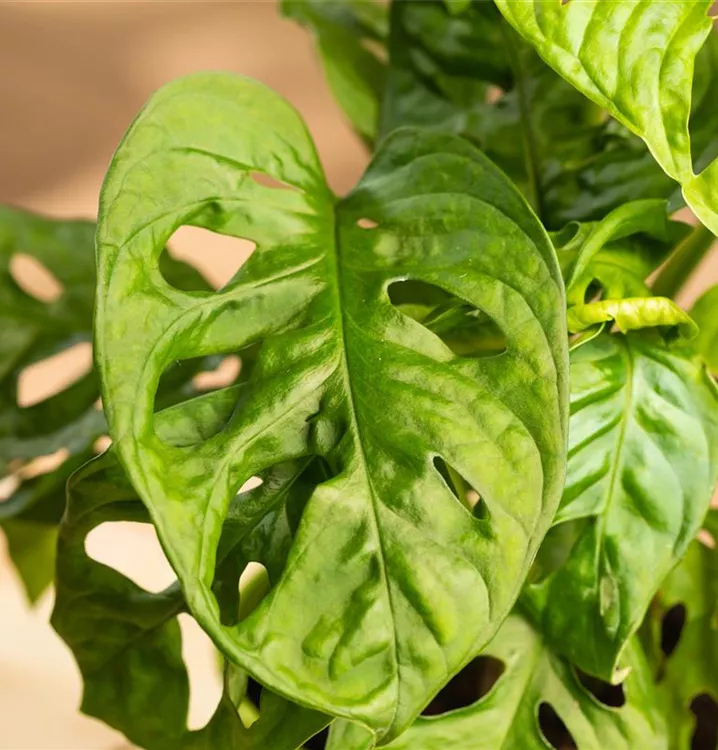 Die Blätter des Fensterblatts 'Monkey Leaf' sind dunkelgrün.