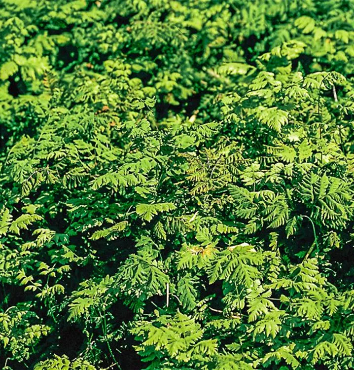 Der Federiger Eichenfarn 'Plumosum' (Gymnocarpium dryopteris) ist mit seiner hellgrünen Blattfärbung ein dekoratives Gestaltungselement im Garten, welches sich an einem halbschattigen bis schattigen Standort mit einem möglichst durchlässigen, humosen Boden am wohlsten fühlt. Bei günstigen Bedingungen erreicht diesen winterhartn Farn eine Höhe von ca. 35 cm und wird bis zu 30 cm breit.
