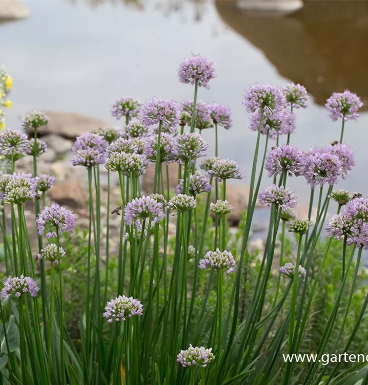 Der Zierlauch (Allium) bringt ansehnliche, helllilarbene Blüten von Mitte Juni bis Ende Juli hervor. Bevorzugt wird ein durchlässiger, humoser, nährstoffreicher Boden in sonniger Lage. Die aufrechte Staude erreicht gewöhnlich eine Höhe von 45 - 55 cm und wird bis zu 40 cm breit.