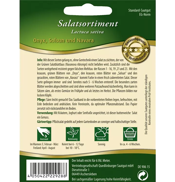 Das Salatsortiment 'Blattlaussortiment' ist im Gemüsegarten, aber auch zum Frischverzehr oder für Salat sehr beliebt.