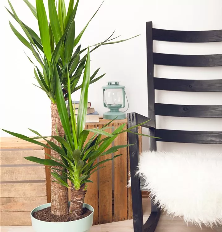 Die Yucca-Palme (Yucca elegans) ist eine sehr beliebte Kübelpflanze. Ihre dekorativen Blüten erscheinen von Juli bis August. Verwenden Sie bevorzugt die spezielle Kübelpflanzenerde, denn sie verdichtet sich über längere Zeit nicht.