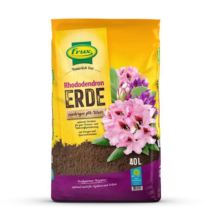 Mit der frux Rhododendron- & Moorbeeterde steht dem Verbraucher eine hochwertige Spezialerde zur Verfügung, die sich schon jahrzehntelang im internationalen Erwerbsgartenbau bewährt hat. frux Rhododendron- & Moorbeeterde ist ein gebrauchsfertiges Kultursubstrat für alle Moorbeetpflanzen wie Rhododendren, Azaleen, Eriken, Besenheide usw. Durch die Verwendung von hochwertigem Torf mit optimaler Struktur und Holzfasern garantiert diese Spezialerde eine gute Wasser- und Nährstoffspeicherung. Die Erde bleibt vergießfest und atmungsaktiv. frux Rhododendron- & Moorbeeterde enthält Dünger und alle für das Pflanzenwachstum notwendigen Spurenelemente.