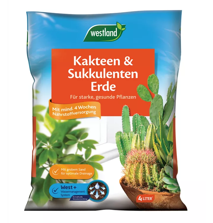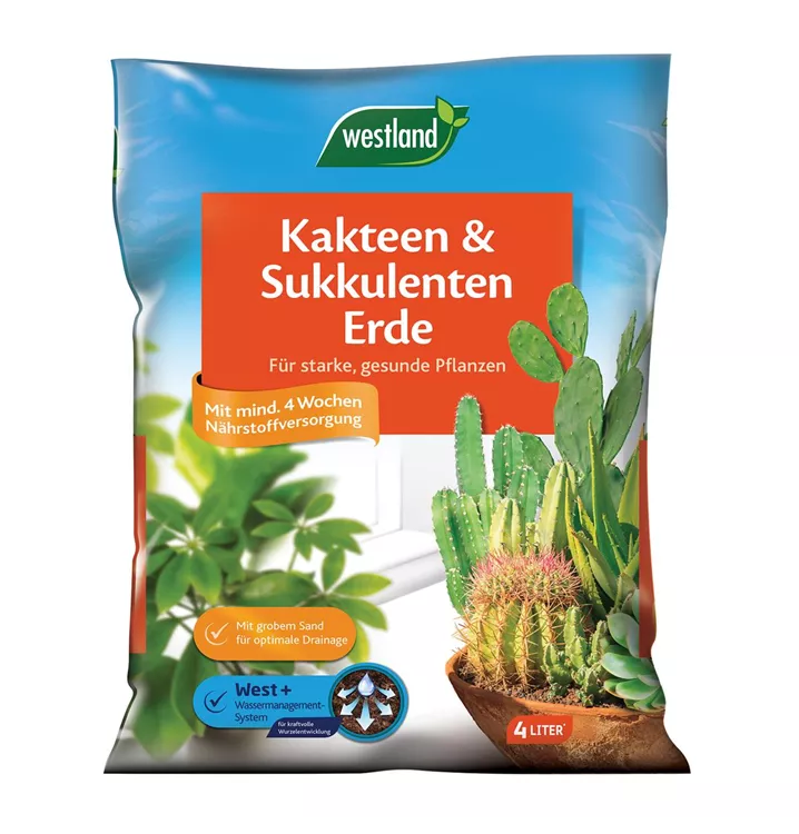 Die Westland Kakteen & Sukkulentenerde enthält eine ideal abgestimmte Nährstoffmixtur. Grober Sand sorgt für eine effektive Wasserführung. Das beigemischte Tongranulat und die West+ Technologie bilden ein nachhaltiges Wassermanagement-System aus natürlichen Rohstoffen, welches das Wurzelwachstum stärkt und eine gleichmäßige Verteilung von Gießwasser und Nährstoffen gewährleistet. Dies sorgt für ein gesundes Wachstum und vitale Kakteen und Sukkulenten.
