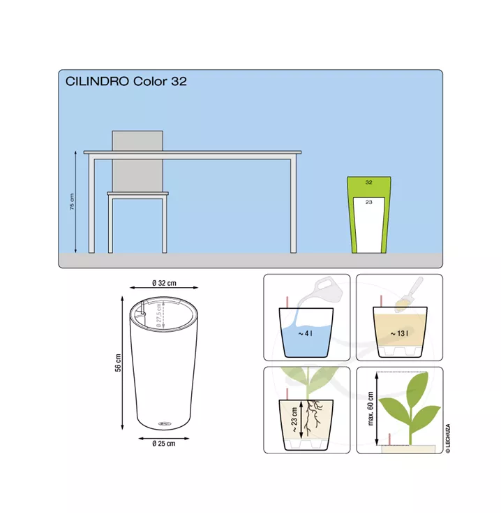 Das Pflanzgefäß CILINDRO setzt mit der dezenten Linienstruktur und dem minimalistischen Design Pflanzen wirkungsvoll und stilsicher in Szene. Ob eine große Zimmerpflanze als dekorativen Blickfang oder eine zarte Orchidee auf einem Sideboard – die Pflanzsäule CILINDRO ermöglicht in den beiden Größen 23 und 32 individuelle Gestaltungsvarianten, die zu jedem Einrichtungsstil passen.