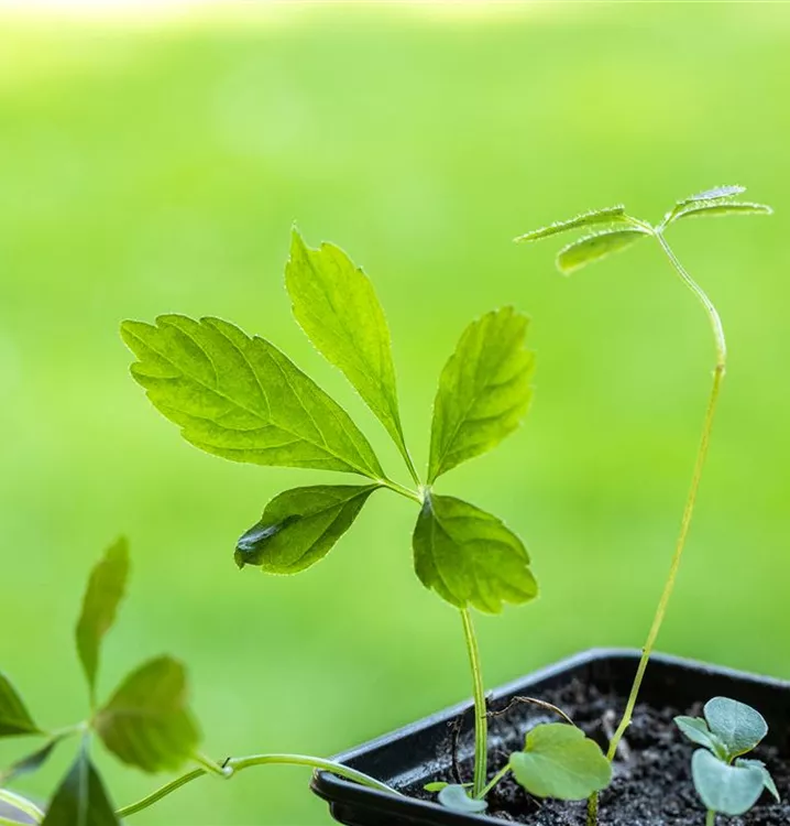 Das Fünfblättrige Heilkraut (Gynostemma pentaphyllum) ist eine kletternde, rhizombildende, schlanke wintergrüne Staude, die dekorative schwarze Blätter bildet. An einem halbschattigen Standort mit durchlässigem, sandigem, lehmigem Boden erreicht es gewöhnlich eine Höhe von ca. 2 m und wird ca. 60 cm breit.