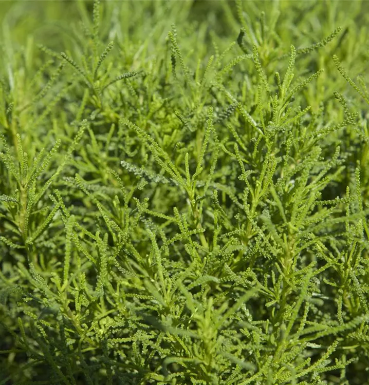 Zum Verzehr geeignet. Die Blätter des Olivenkrauts sind mittelgrün, gefiedert.