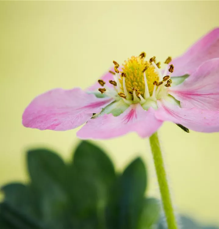 Die Erdbeere 'Rosana' (Fragaria x ananassa) bildet rote, kleine Beeren. Diese sind aromatisch im Geschmack. Für eine ertragreiche Ernte ab Juni schaffen durchlässiger, humoser Boden und ein sonniger Standort optimale Bedingungen. Auch ihre hellrosafarbenen Blüten sind eine schöne Erscheinung.