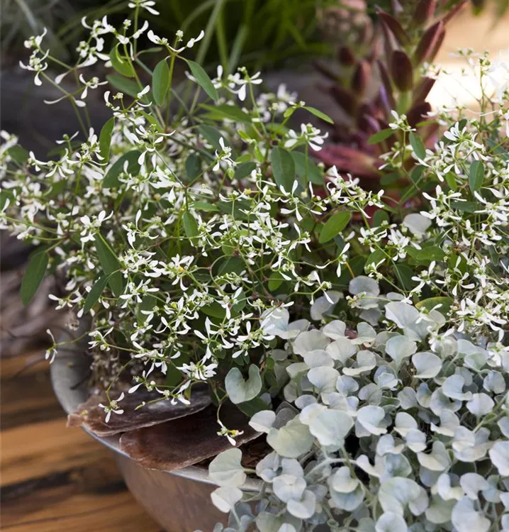 Der Silberregen 'Silver Falls' besitzt ein bestechend schönes Laub und eine ungewöhnliche Wuchsform.