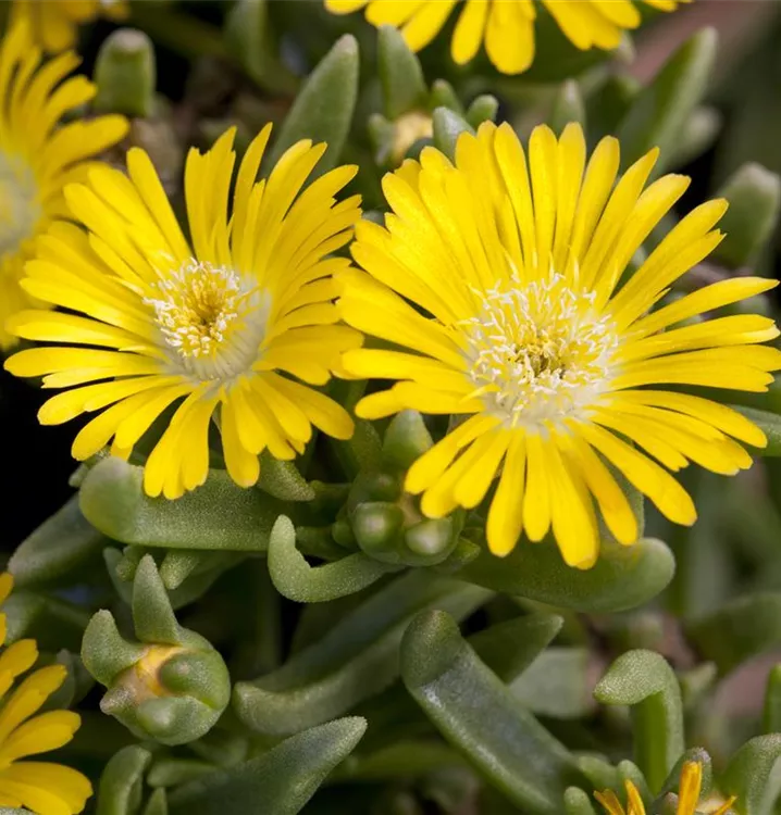 Delosperma 'Wheels of Wonder® Golden Wonder' bildet strahlenförmige, körbchenartige, gelbe Blüten ab Juli.