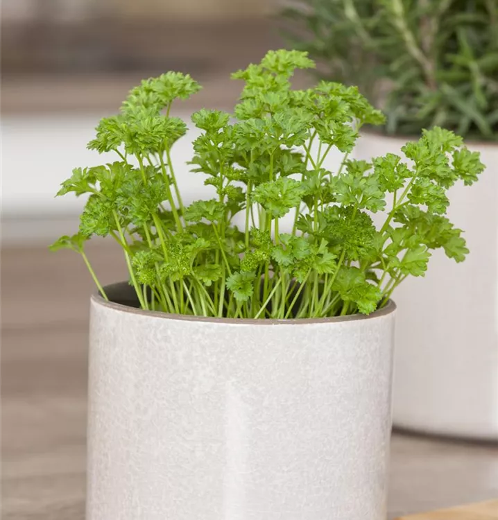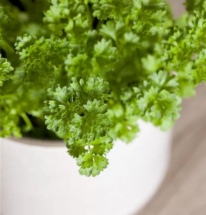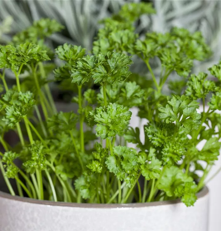 Die Krause Petersilie 'Mooskrause 2' ist als Kübelpflanze, aber auch im Bauerngarten, zum Frischverzehr, zum Kochen oder für Saucen & Dips sehr beliebt.