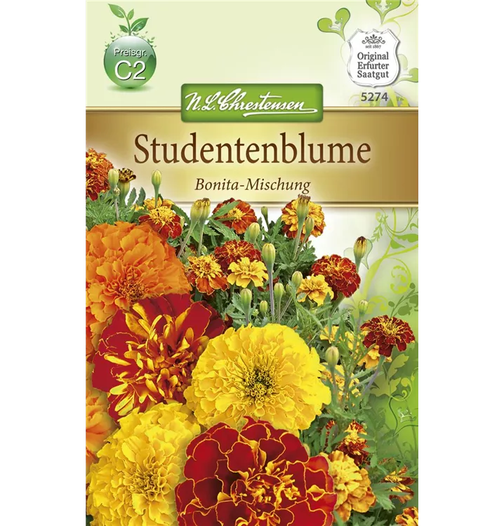 Diese Pflanze könnte in ihren Ansprüchen bzw. Aussehen der Studentenblume 'Bonita-Mischung' ähnlich sein: Tagetes erecta (Aufrechte Studentenblume).