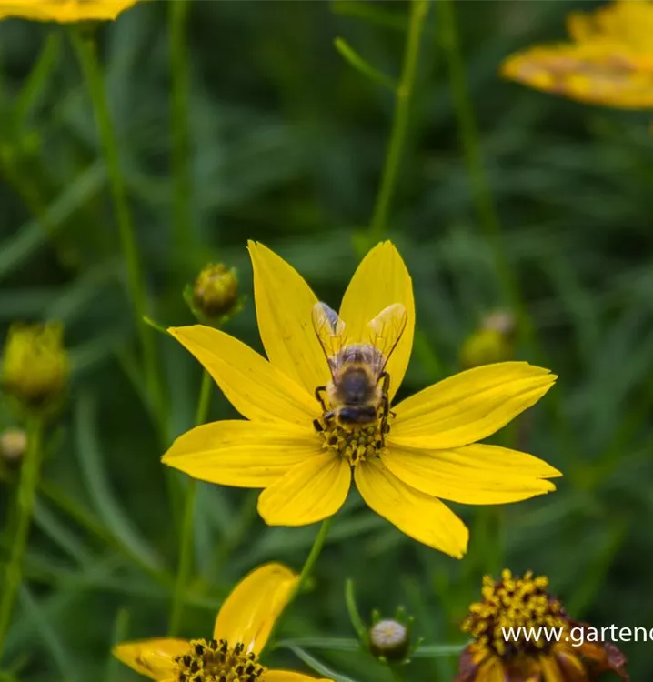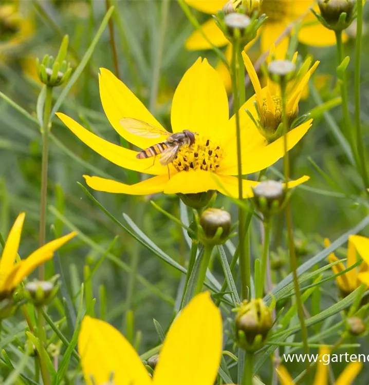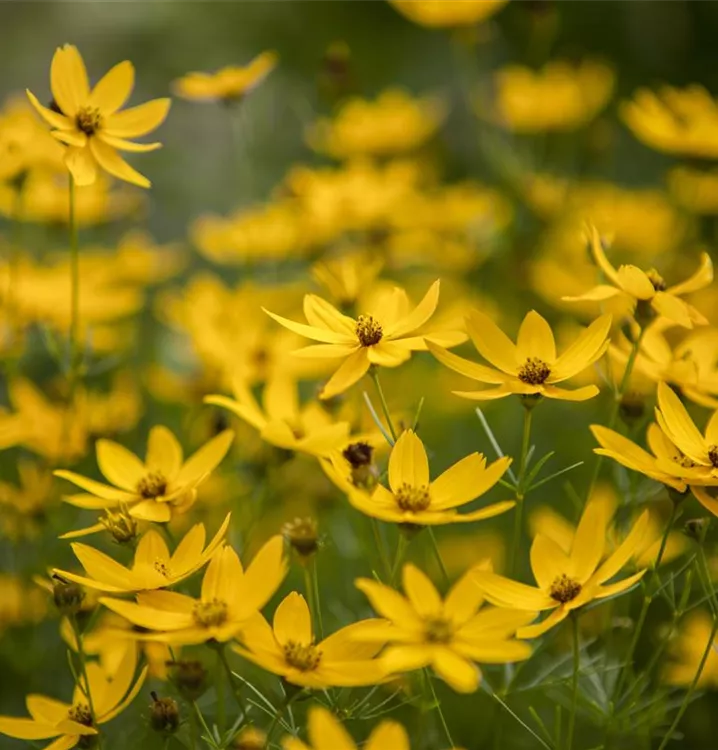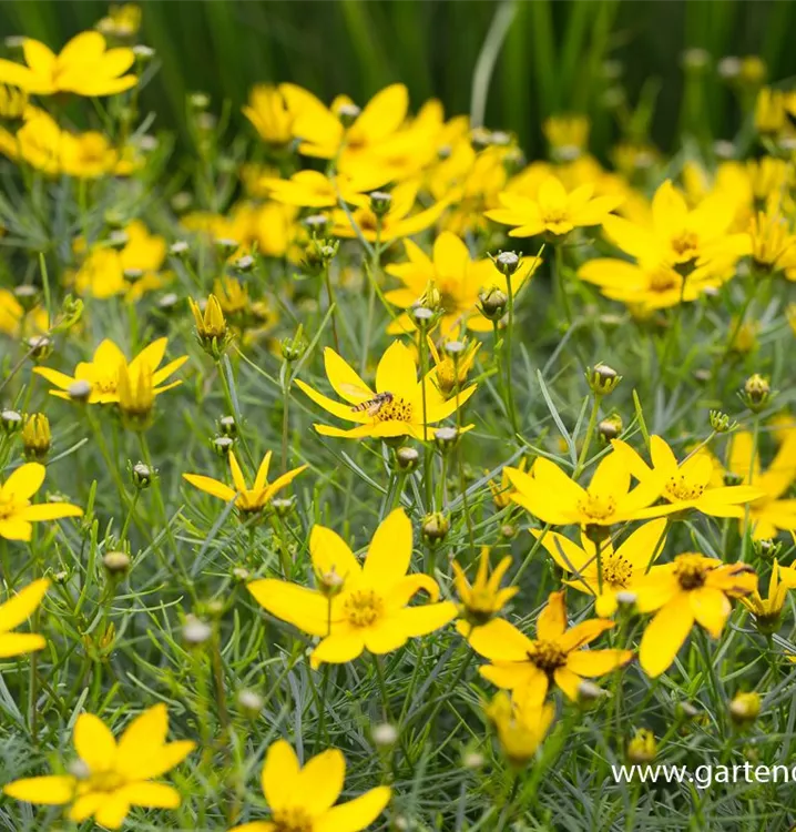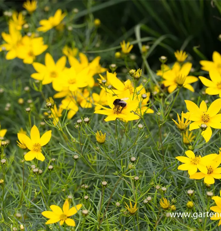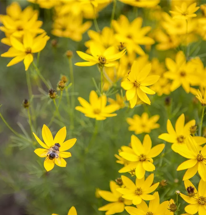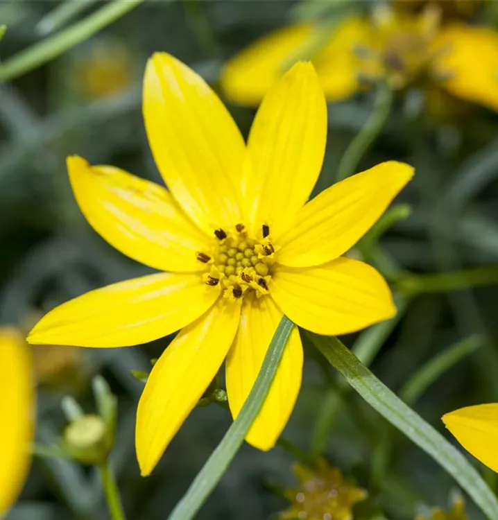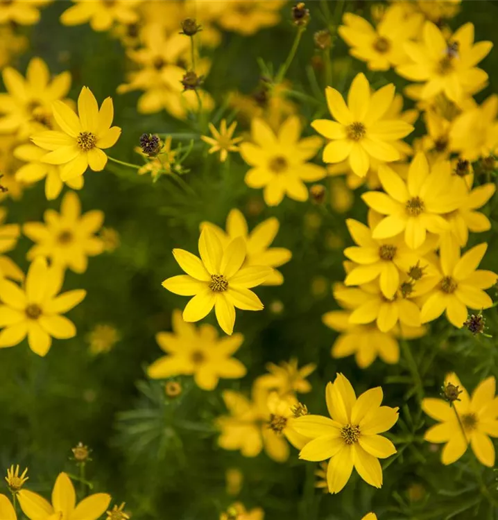 Coreopsis verticillata 'Zagreb' bildet strahlenförmige, gelbe Blüten ab Juni.